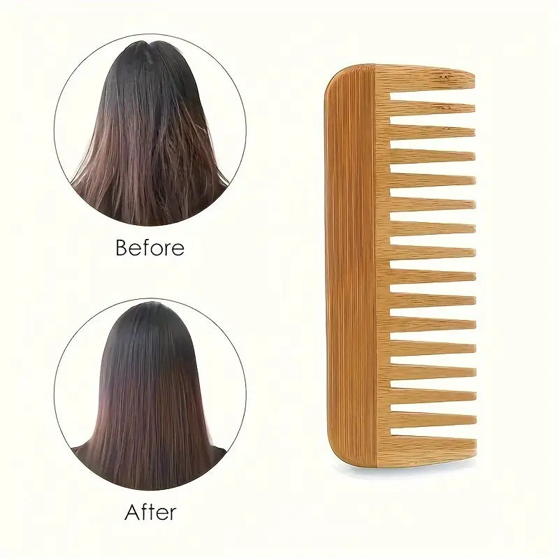Pente de Bambu de Dentes Largos para Cabelo